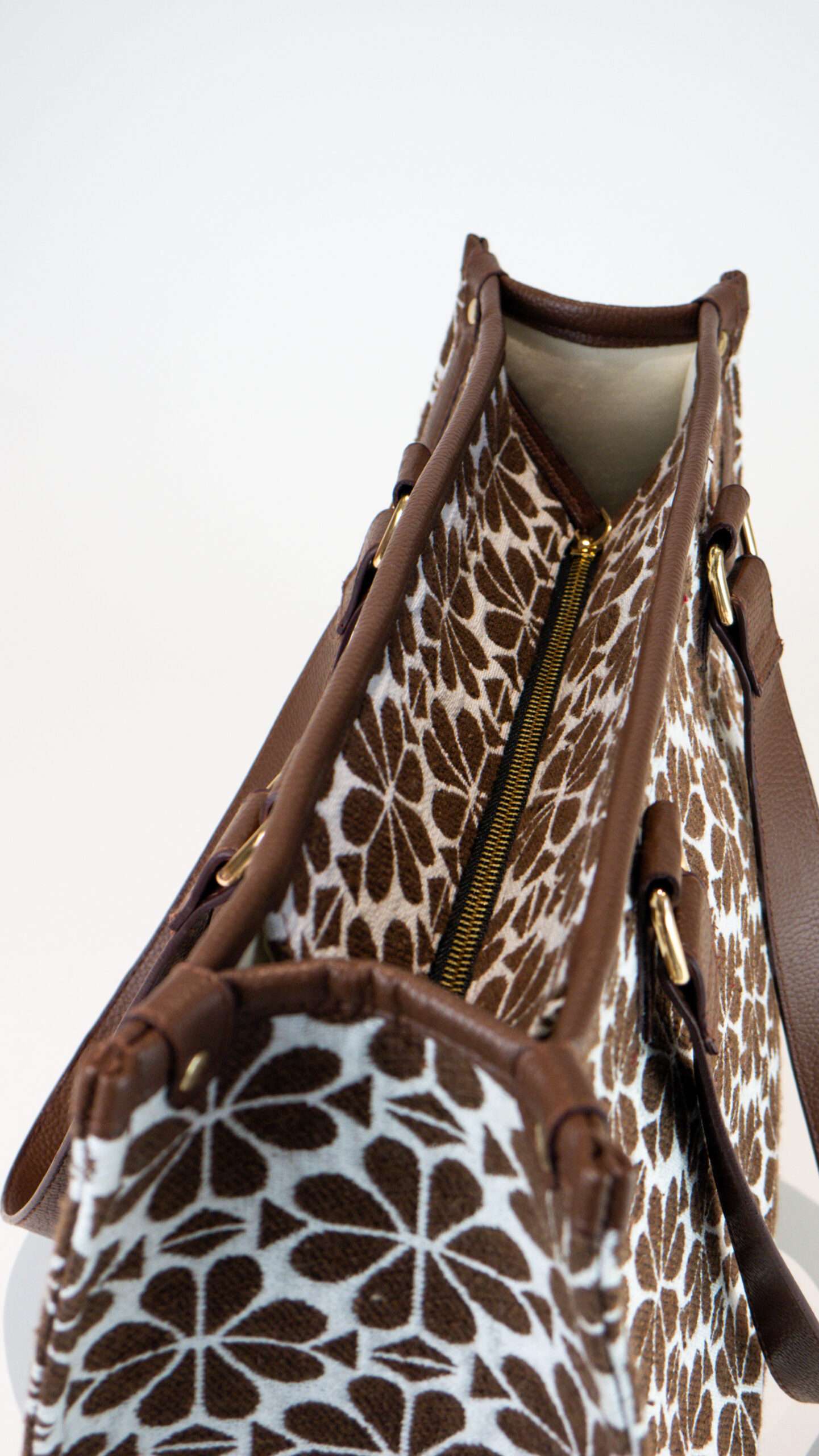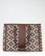 Handbag in a jacquard-weave cotton blend fabric with Vegan Leather handles & Trims. Lining in polyester. Inner Zip Pocket. Main Zip Closure