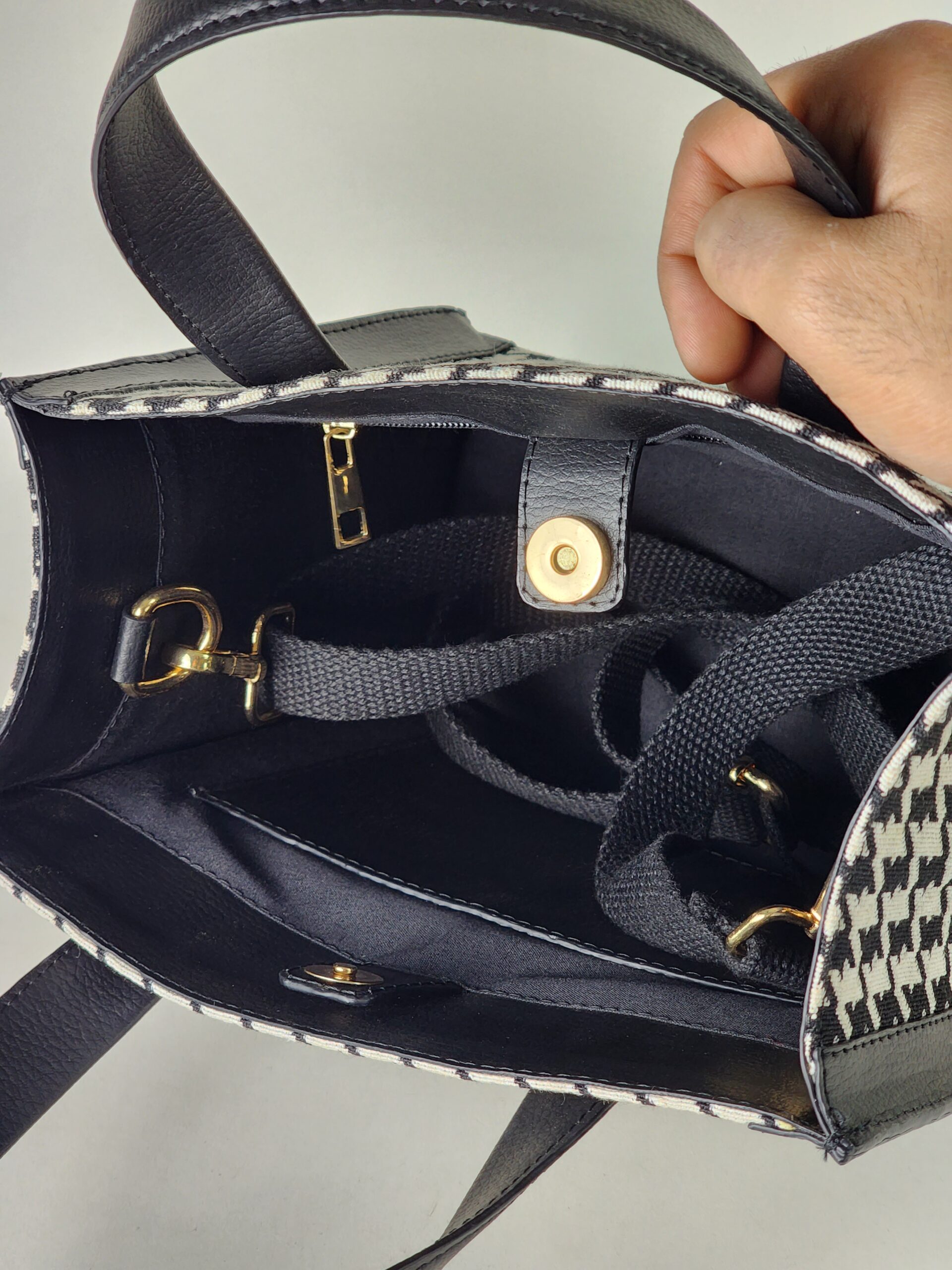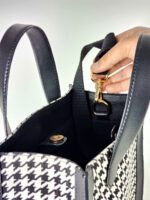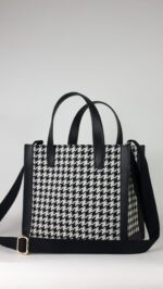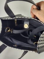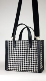 Handbag in a jacquard-weave cotton blend fabric with Vegan Leather handles & Trims. Lining in polyester. Inner Zip Pocket. Main Zip Closure